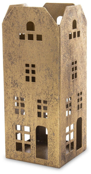 ART-POL Patinás arany szín fém toronyház jellegű mécsestartó házikó ablakokkal 22x9x9cm (172913)