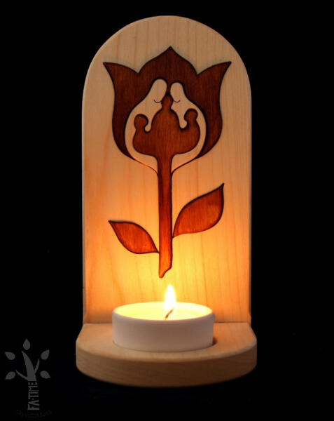 A legszebb közösség -Fa mécsestartó – Család, Ölelő Tulipán motívummal Ez az egyedi, természetes fából készült mécsestartó Simon András grafikus által tervezett " alegszebb közösség" motívum a szeretet és az összetartozás szimbólumát ötvözi a hagyományos népi motívumokkal. A tulipán formájában finoman megrajzolt ölelő alakok mély érzelmi jelentést hordoznak, melyet a mécses lágy fénye még inkább kiemel. A kiváló minőségű faanyag és a gondosan megmunkált, részletgazdag minta teszi ezt a mécsestartót nemcsak dekoratívvá, hanem lelket melengető ajándékká is. Tökéletes választás szeretteink számára esküvőre, évfordulóra vagy bármilyen különleges alkalomra. Anyaga: természetes fa (Az ár a grafikus szerzői jogdíját is tartalmazza!)