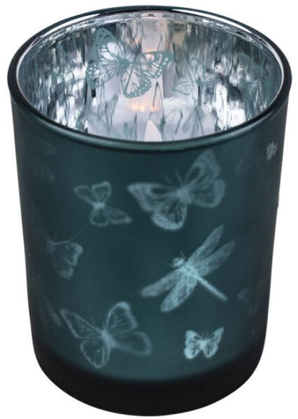 Mars & More Üveg teamécses tartó, lepke és szitakötő sziluettel, petrol kék, 12 cm (XMWLIPM)