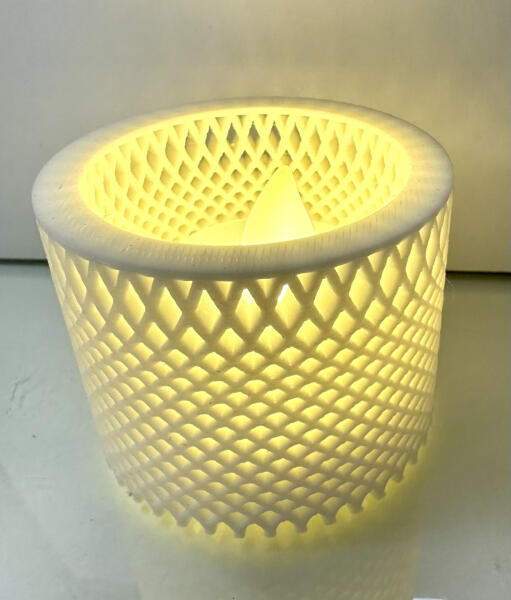 Ez a 3D nyomtatott mécsestartó egyedi mintájának és beépített LED-es mécsesének köszönhetően meleg, otthonos hangulatot teremt bármely helyiségben. Az innovatív, lélegzetelállító design modern és letisztult stílust képvisel, miközben a LED-es világítás biztonságos és energiahatékony megoldást kínál a gyertyafény hangulatának megteremtéséhez.