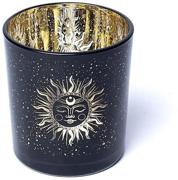 A Nap Hold mécsestartó üvegből készült, harmonikus Nap és Hold mintázattal, amely nyugalmat és egyensúlyt varázsol a térbe.